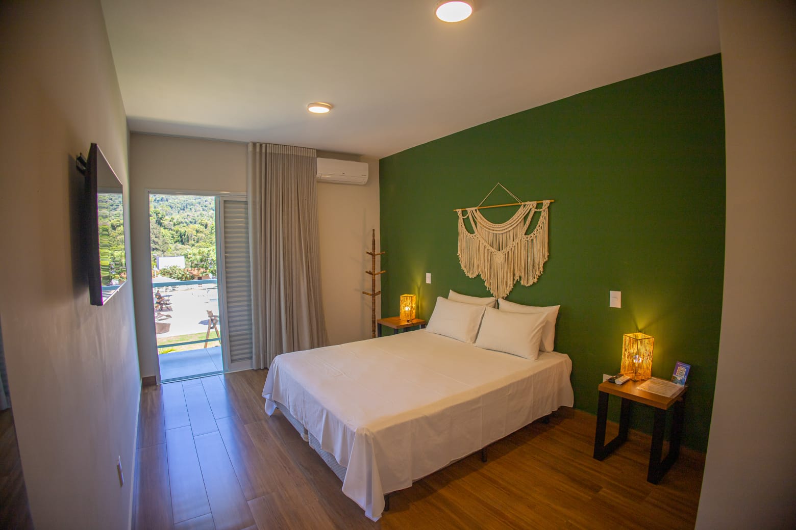 Descubra a combinação perfeita de lazer e descanso. Uma suíte espaçosa, com todo o conforto e comodidade que você imaginar, com um maravilhoso espaço que conta com cama box casal grande, ou duas de solteiro, ar-condicionado, ducha com aquecimento solar, smart-tv, frigobar, secador de cabelo, wi-fi e uma varanda com vista para as montanhas da nossa região e para a nossa piscina.